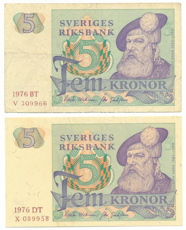 Svédország 1976. 5K (2xklf) T:AU-F Sweden 1976. 5 Kronor (2xdiff) C:AU... https://www.darabanth.com/hu/498-Gyorsarveres/498.0/Numizmatika/Kulfoldi-bankjegyek~1000103/Svedorszag-1976-5K-2xklf-TAU-F-Sweden-1976-5-Kronor-2xdiff-CAU-F~II3382971