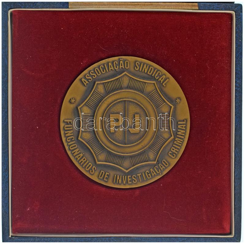 Leírás: Portugália DN "PJ - Associacao Sindical Funcionarios de Investigacao Criminal" egyoldalas bronz rendőrségi plakett kissé viseltes tokban (80mm) T:AU