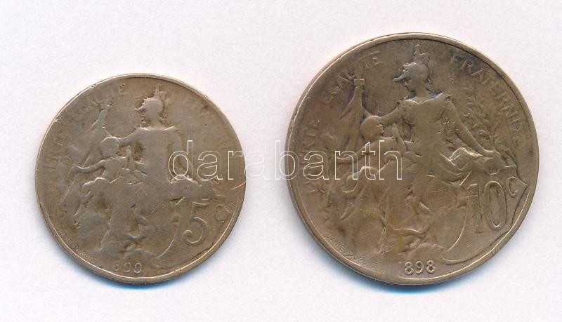 Leírás: Franciaország 1899. 5c bronz + 1898. 10c bronz T:VF-F France 1899. 5 Centimes bronze + 1898. 10 Centimes bronze C:VF-F Krause KM#843, KM#842