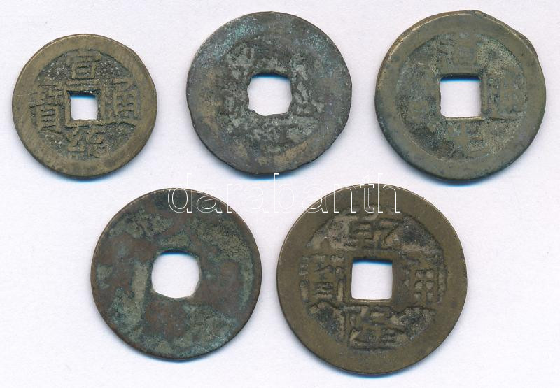 Leírás: Kínai Császárság ~19. század Cu cash (5db) T:F Chinese Empire ~19th century Cu cash (5pcs) C:F