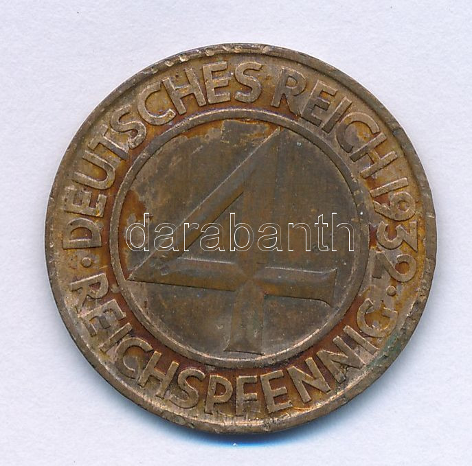 German Empire / Weimar Republic 1932. 4 Reichspfennig bronze, mintmark can't be seen C:VG