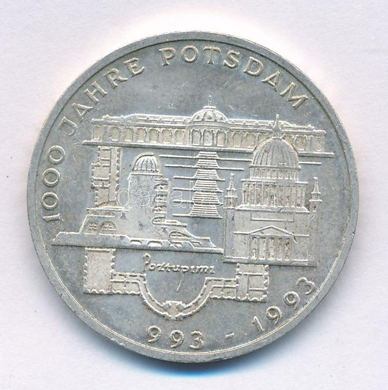 Ge... https://www.darabanth.com/hu/498-Gyorsarveres/498.0/Numizmatika/Kulfoldi-fem-es-ezustpenzek~1000104/Nemetorszag-1993F-10M-Ag-1000-eves-Potsdam-TAU-patina3Cbr-3E-Germany-1993F-10-Mark-Ag-1000th-~II3397281