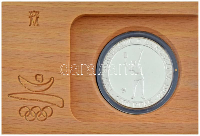 Spanyolország 1991. 2000P Ag "Nyári Olimpia 1992 Barcelona - Tenisz" fa dísztokban, tanúsítvánnyal T:BU