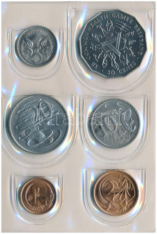 Australia 1982. 5 Cents - 50 Cents (6xklf) coin set in "XII Commonwealth Games Brisbane" green faux-leather case C:UNC