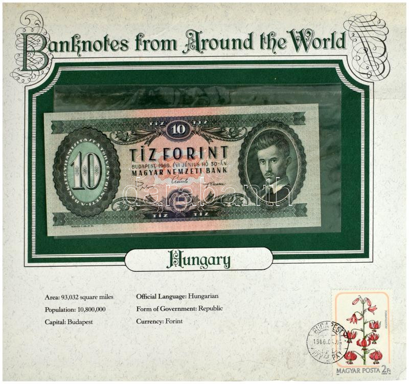Leírás: 1969. 10Ft "A 404 009907" felbélyegzett, "Banknotes from Around the World" kartonlapon T:UNC