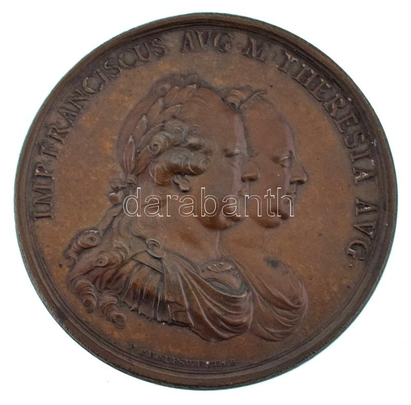 1762. "IMP. FRANCISCUS AVG. M. THERESIA AVG. / SECVRITAS DACIAE MDCCLXII" kétoldalas Cu érem az erdélyi határőrség megszervezésének emlékére kiadva Mária Terézia uralkodása alatt. Szign.: P(eter) Kaiserwerth, IDF (Ignatz Donner) (59mm) T:XF ph. Hungary 1762. "IMP. FRANCISCUS AVG. M. THERESIA AVG. / SECVRITAS DACIAE MDCCLXII" Cu medallion commemorating the establishment of the Transylvanian border patrol under the reign of Maria Theresia. Sign.: P(eter) Kaiserwerth, IDF (Ignatz Donner) (59mm) C:XF edge error
