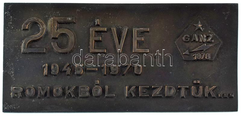 Leírás: 1970. "25 éve - 1945-1970 - Romokból kezdtük... " egyoldalas bronz emlékplakett, a felszabadulás 25. évfordulójára (160x76mm) T:AU patina