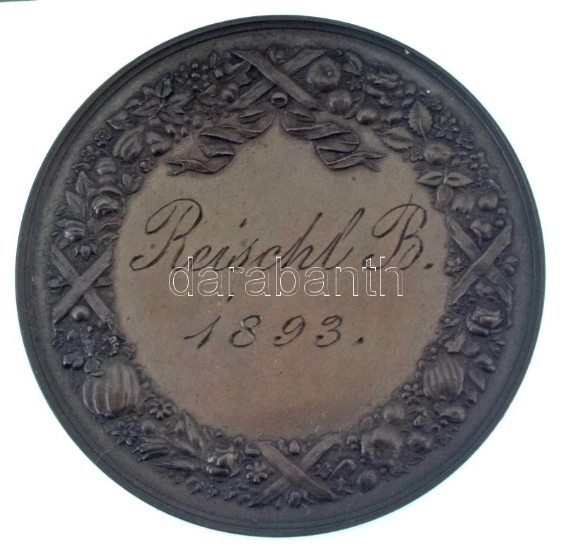 Heinrich Jauner (1833-1912) 1895. "Országos Magyar Kertészeti Egyesület Budapesten 1895" kétoldalas bronz emlékérem, eredeti külső oldalán "Országos Magyar Kertészeti Egyesület Budapesten" feliratos, belső oldalán pedig "Jauner K.K. Kammer Graveur Wien Augustiner Str. 17" jelzésű gyártói tokban, hátoldalán gravírozva (42mm) T:UNC,AU