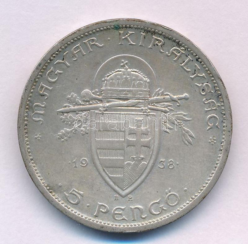 1938. 5P Ag "Szent István" T:XF ph. Adamo P8.1 https://www.darabanth.com/hu/498-Gyorsarveres/498.0/Numizmatika/Magyar-es-magyar-verdejelu-fem-es-ezustpenzek~1000098/1938-5P-Ag-Szent-Istvan-TXF-ph-Adamo-P81~II3130676