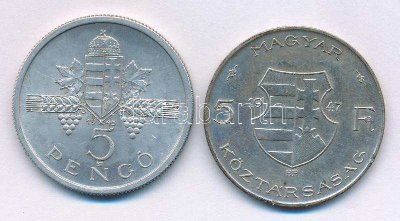 Leírás: 1945. 5P Al "Parlament" + 1947. 5Ft Ag "Kossuth" T:XF ph.