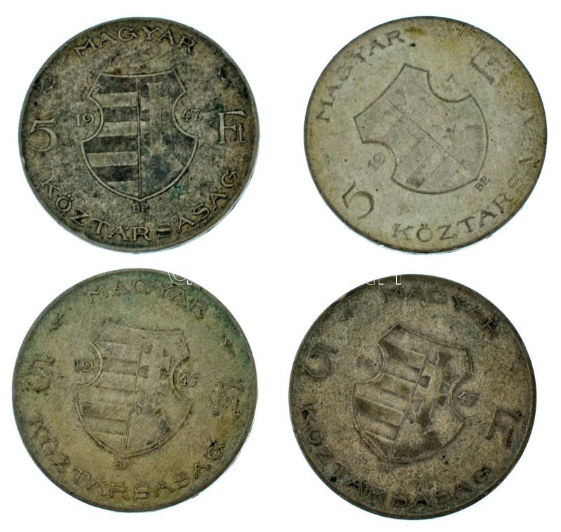 Leírás: 1947. 5Ft Ag "Kossuth" (4x) T:XF-F patina Adamo F8.1