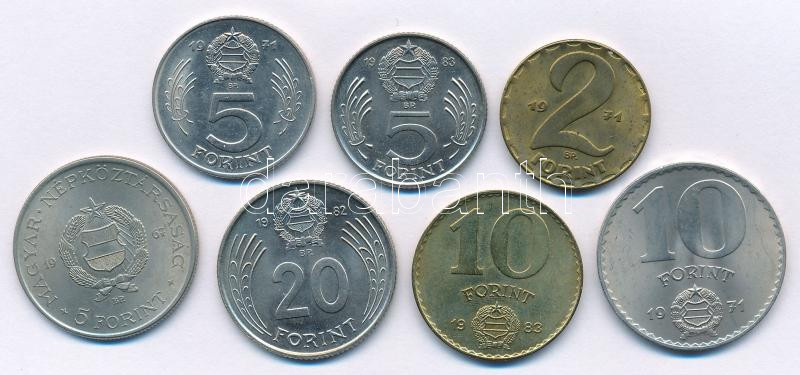 1967-1983. 2Ft-20Ft (7xklf) T:AU,XF https://www.darabanth.com/hu/498-Gyorsarveres/498.0/Numizmatika/Magyar-es-magyar-verdejelu-fem-es-ezustpenzek~1000098/1967-1983-2Ft-20Ft-7xklf-TAU-XF~II3402160