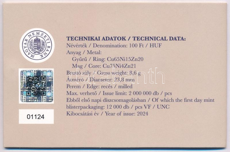 Leírás: 2024. 100Ft "100 éves a Magyar Nemzeti Bank " első napi veret díszcsomagolásban "01124" T:UNC