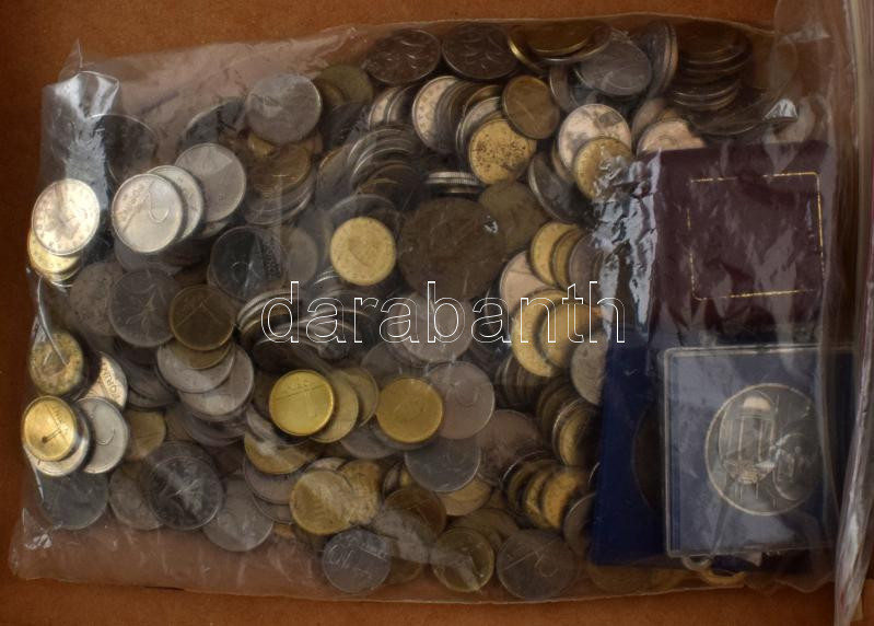 ~1,4kg, főleg 1Ft és 2Ft érmékből álló tétel, benne elenyésző egyéb érmék, illetve DN "50 Véradásért / Magyar Vöröskereszt" részben festett fém emlékérem kapszulában + Csucs Viktória (1934-1993) 1979. "Magyar Éremgyűjtők Egyesülete 1969-1979" kétoldalas bronz emlékérem + DN "Keszthely" ezüstpatinázott bronz emlékérem T:vegyes
