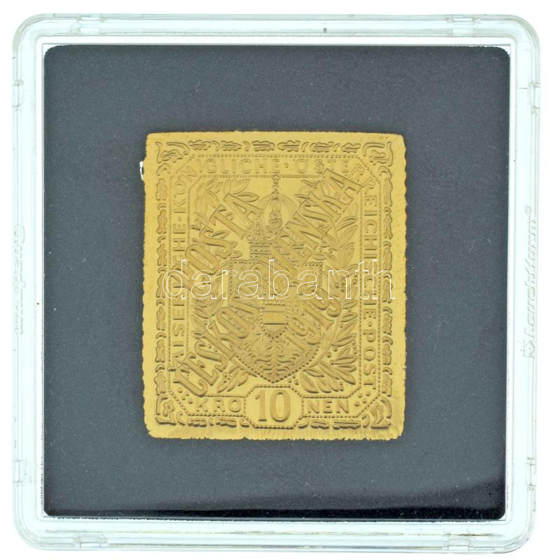 Leírás: DN "Világ Bélyegcsodái - Csehszlovákia 10 Korona 1919 " aranyozott Cu bélyegérem, kapszulában, tanúsítvánnyal (24,6x28,7mm) T:PP