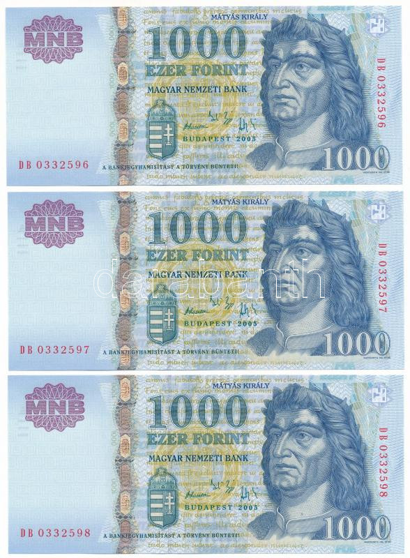 Leírás: 2005. 1000Ft (2x) sorszámkövetők "DB 0332596 - DB 0332598" T:UNC