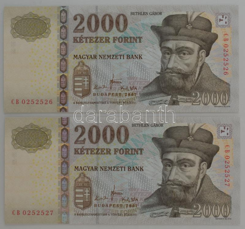 Leírás: 2007. 2000Ft (2x) sorszámkövetők "CB 0252526 - CB 0252527" T:UNC