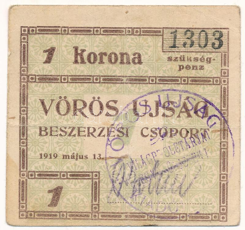 Budapest 1919. 1K "Vörös Ujság" szükségpénz T:F Adamo BUC-30... https://www.darabanth.com/hu/498-Gyorsarveres/498.0/Numizmatika/Papir-es-fem-szuksegpenzek~1000096/Budapest-1919-1K-3Cem3EVoros-Ujsag3Cem3E-szuksegpenz-TF-Adamo-BUC-3002~II3206189