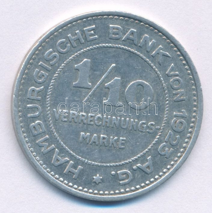 Leírás: Németország / Weimari Köztársaság / Hamburg 1923. 1/10M Al szükségpénz "Verrechnungsmarke" T:XF
