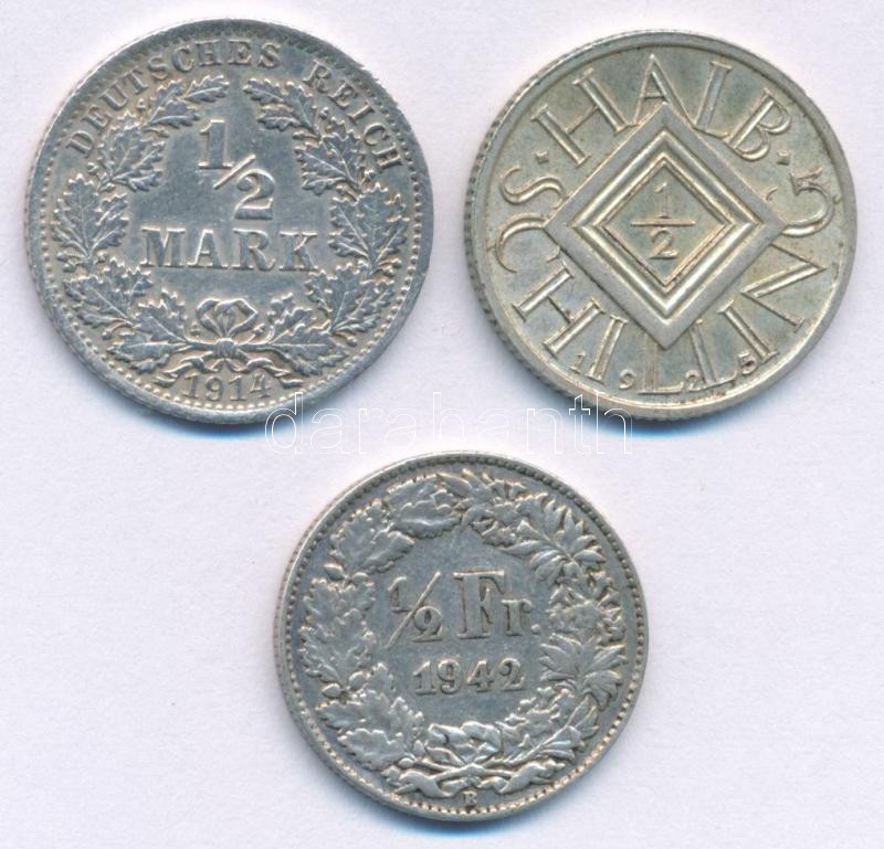 Vegyes 3db-os érme tétel, benne: Német Birodalom 1914A 1/2M Ag + Ausztria 1925. 1/2Sch Ag + Svájc 1942B 1/2Fr Ag T:XF