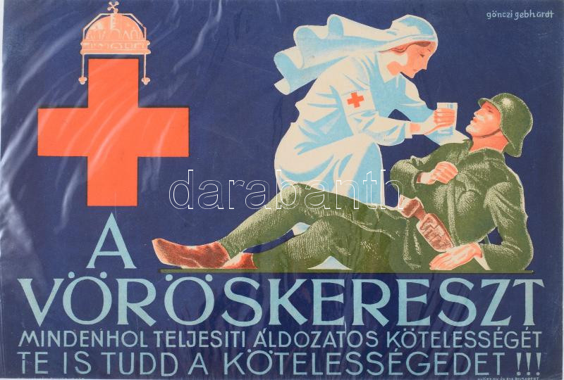 Leírás: 1941 Militária téma Vöröskereszt mindenhol teljesíti..- kisplakát kartonon, s: Gönczi Gebhardt, Klösz nyomda, 24x17 cm Szép állapotban