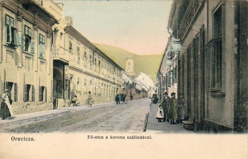 Oravicza Hauptstrassse mit Hotel https://www.darabanth.com/hu/5-Nagyaukcio/5.1/Magyar-kepeslapok/Erdely-Siebenburgen-heute-Rumanien-Transylvania-today-Romania~1306/Oravicza-Hauptstrassse-mit-Hotel~II109287