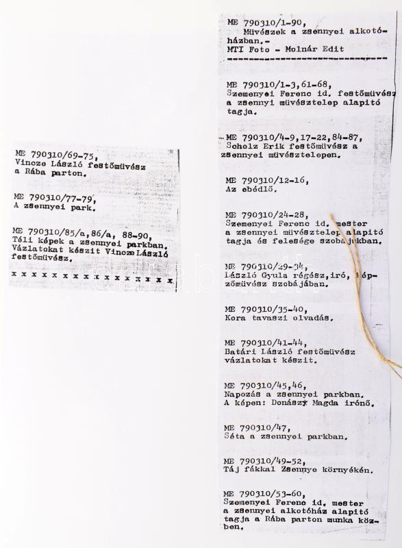 Leírás: A Zsennyei művésztelepről készült 48 db fotó, indexkép, négy lapra nagyítva, hátoldalán részletes feliratozással, Molnár Edit fotója 25x30 cm