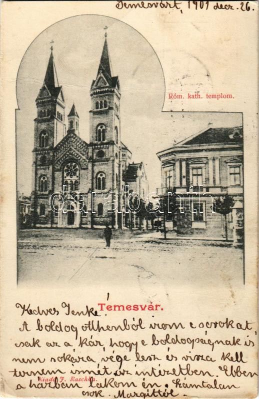 1901 Temesvár, Timisoara; Római katolikus templom. J. Raschka kiadása ... https://www.darabanth.com/hu/500-Gyorsarveres/500.0/Kepeslapok/Erdely~2500006/1901-Temesvar-Timisoara-Romai-katolikus-templom-J-Raschka-kiadasa-church~II3117423