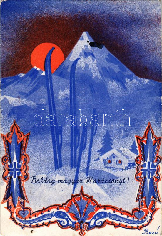 Leírás: 1941 Boldog Magyar Karácsonyt! Árpád Nyomda kiadása / Hungarian irredenta propaganda, Christmas greeting art postcard s: Bozó (EB)