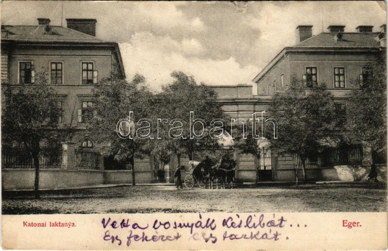 1913 Eger, katonai laktanya. Károly Gyula kiadása (szakadás / tear) https://www.darabanth.com/hu/500-Gyorsarveres/500.0/Kepeslapok/Magyarorszag~2500005/1913-Eger-katonai-laktanya-Karoly-Gyula-kiadasa-szakadas-tear~II3405139