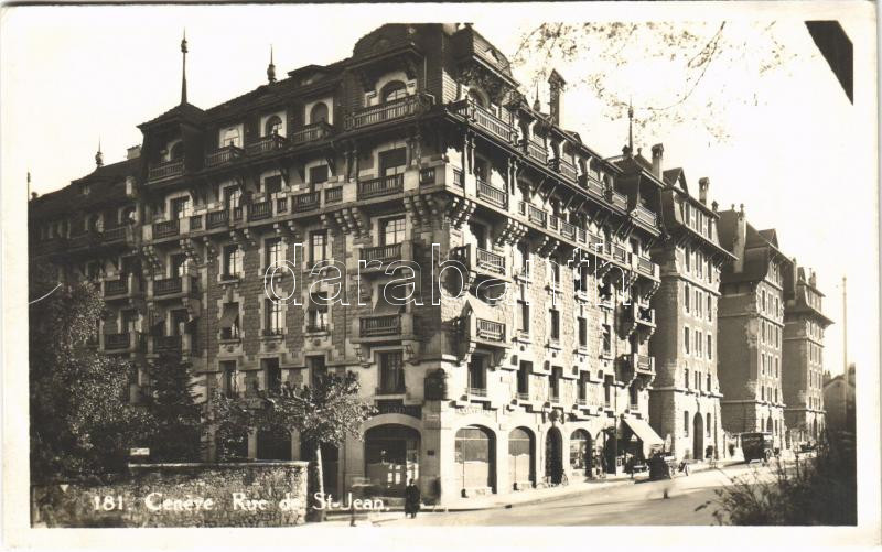 1929 Geneve, Geneva, Genf; Rue de St.-Jean / street view, automobile https://www.darabanth.com/hu/500-Gyorsarveres/500.0/Kepeslapok/Svajc~2500069/1929-Geneve-Geneva-Genf-Rue-de-St-Jean-street-view-automobile~II3408609