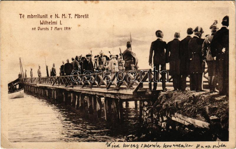 1914 Durres, Durazzo; Te mbrritunit e N.M.T. Mbretit Wilhelmi I. ne Durres 7 Marc 1914. Selim Man Hoggia / On the arrival of His Majesty King Wilhelm I. (EB)