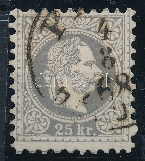 Leírás: 1867 25kr szürkésibolya bélyeg "PEST / DÉLUTÁN" évszámos bélyegzéssel (70.000)