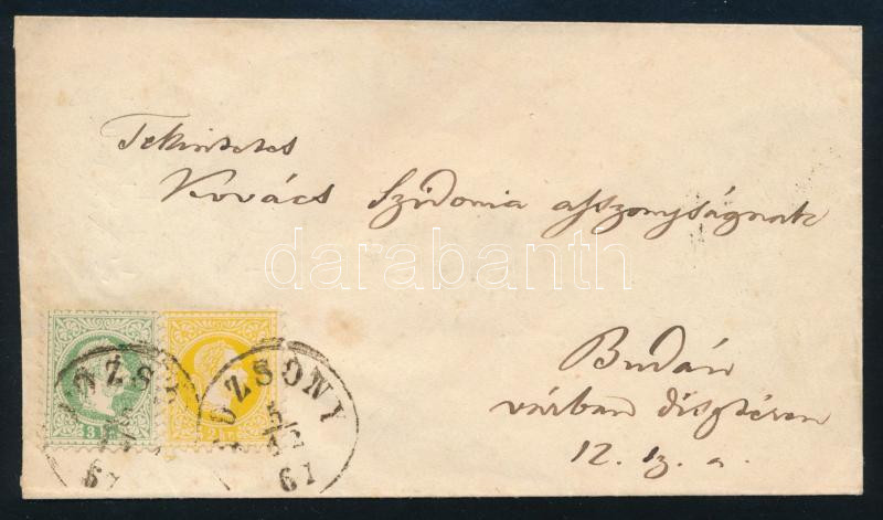 Leírás: 1867 2kr + 3kr levélen "POZSONY" - "BUDA", kiállítási minőségben