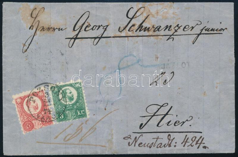 Leírás: 1874 Réznyomat 3kr + 5kr helyi ajánlott levélen "POZSONY VÁROS " (75.000)