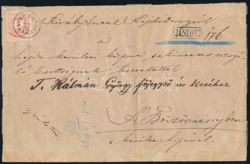 Leírás: 1875 4 db Színes számú 5kr ajánlott levélen "HAJDU DOROGH" - "DEBRECZEN AJÁNLOTT" - "HAJDUBÖSZÖRMÉNY"