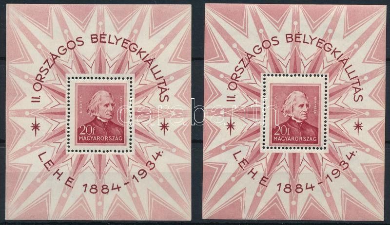 Leírás: 1934 LEHE blokk világos és sötétebb színváltozat, az utóbbi elfogazva (80.000++)