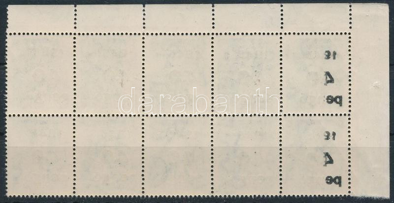 Leírás: 1945 Kisegítő 40P/8f ívsarki 10-es tömb részleges gépszínátnyomattal