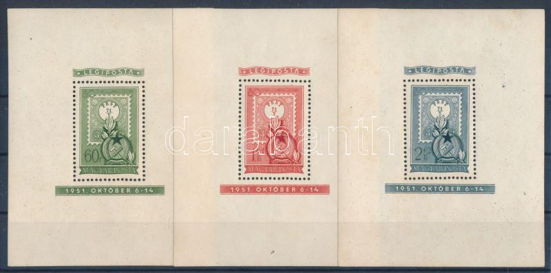 Leírás: 1952 80 éves a magyar bélyeg blokksor (51.000) (kis gumihibák / small gum disturbances)