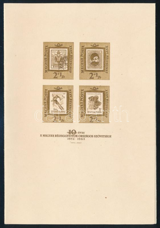 1962 Bélyegnap blokk barna nyomat kartonpapíron MABÉOSZ karácsonyi / ú... https://www.darabanth.com/hu/500-Gyorsarveres/500.0/Kiemelt-magyar-filatelia-tetelek-es-gyujtemenyek/Egyes-magyar-kiadasok-rendkivul-alacsony-kikialtasi-aron~1/1962-Belyegnap-blokk-barna-nyomat-kartonpapiron-MABEOSZ-karacsonyi-ujevi-udvozlokartya-e~II3403258