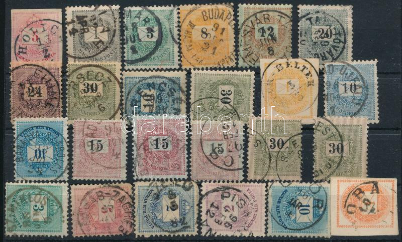 Leírás: 1874-1899 24 db Színes- és Feketeszámú Krajcáros bélyeg és Hírlapbélyegek, stecklapon