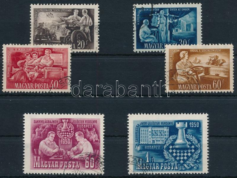 Leírás: 1950-1952 Sakk sor 2 klf értéke + Ötéves terv eredményei sor 4 klf értéke számvízjellel