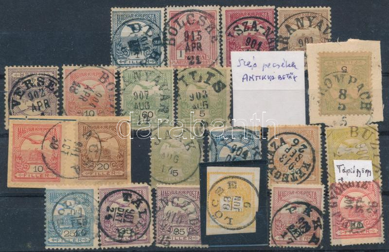 Leírás: 20 db javarészt Turul bélyegzés antikva betűkkel