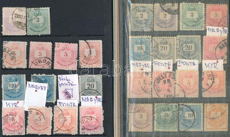 Leírás: 29 db Színesszámú krajcáros bélyeg, közte vésésjavítás, nyomási eltérések