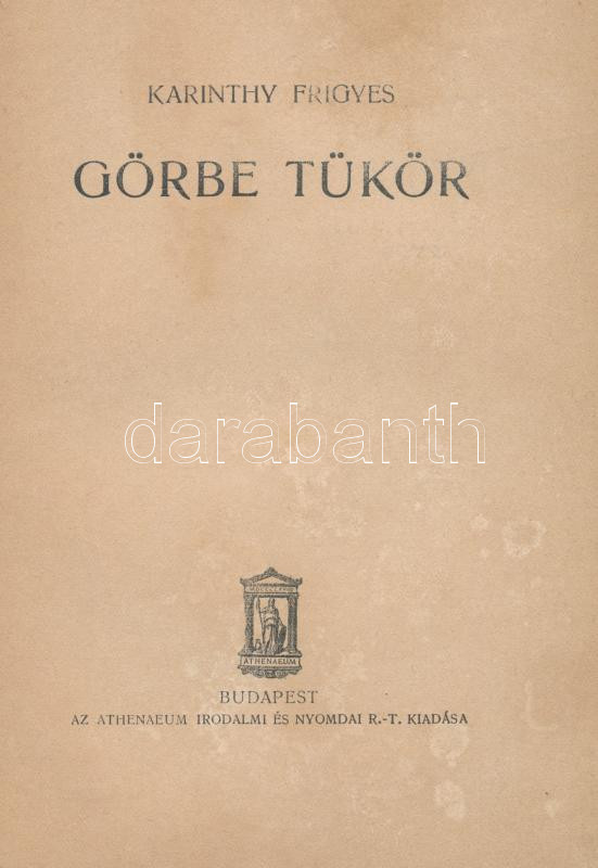 Karinthy Frigyes: Görbe tükör. Bp., 1912, Athenaeum, 287 p. Első kiadás. A borító Guncser Nándor munkája. Kiadói papírkötésben, a gerincen kis hiánnyal.