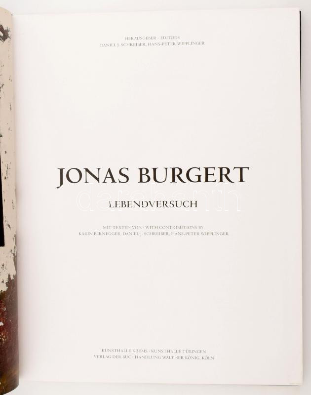 Jones Burgert. Lebendversuch. Hrsg. / Editors: Daniel J. Schreiber, Hans-Peter Wipplinger. Mit Texten von / With Contributions by Karin Pernegger, Daniel J. Schreiber, Hans-Peter Wipplinger. Krems - Tübingen - Köln,2011.,Kunsthalle Krems - Kunsthalle Tübingen - Walther König. Német nyelven. Gazdag képanyaggal illusztrált. Kiadói kartonált papírkötés.