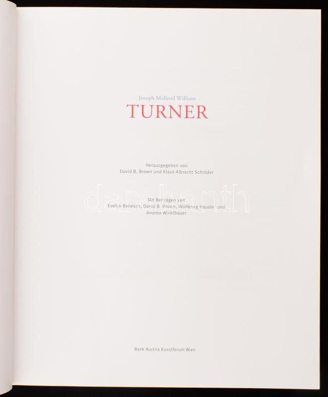 Joseph Mallord William Turner. Hrsg. von David B. Brown und Klaus Albrecht Schröder. Wien,1997,Bank Austria Kunstforum, 350 p. Német nyelven. Gazdag képanyaggal illusztrált. Kiadói papírkötés.