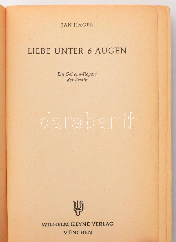 Leírás: Jan Hagel: Liebe unter 6 Augen. München, 1970, Wilhelm Heyne, javított papírkötés, német nyelven.