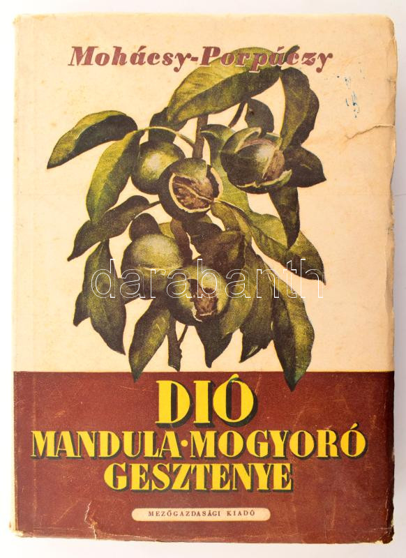 Leírás: Mohácsi Mátyás - Porpáczy Aladár: Dió-, mandula-, mogyoró-, gesztenyetermesztés és nemesítés. Bp., 1951,. Mezőgazdasági, 317+1 p. Kiadói papírkötés, kopott, foltos, szakadt borítóval.