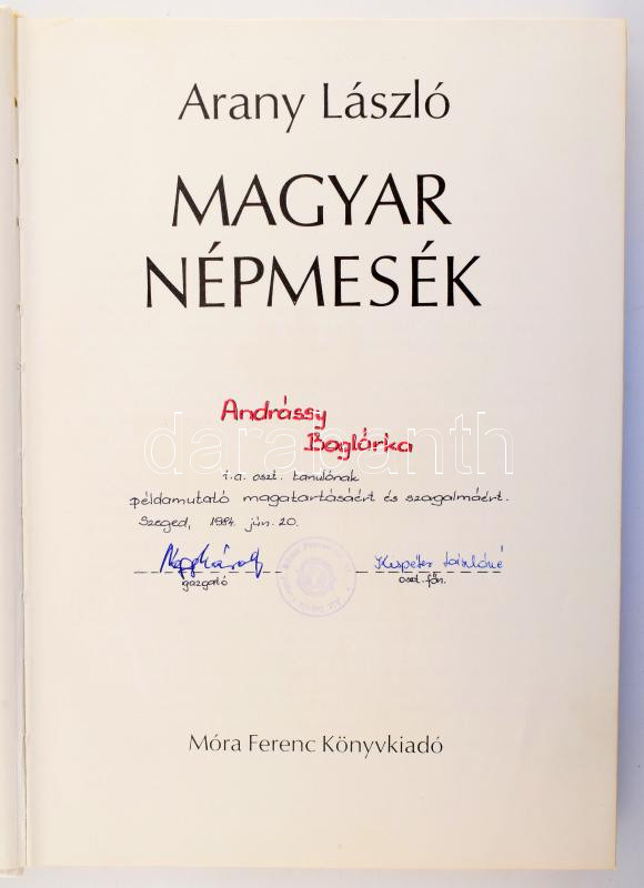 7 db mesekönyv: Arany László: Magyar népmesék.; Az öreg holló meséi.; Pif kalandjai.; A varjúkirály.; A kölestolvaj.; A madárasszony.; Karácsony hava. - Hófehérke karácsonya. Kiadói papírkötés / kartonált papírkötés, vegyes állapotban.